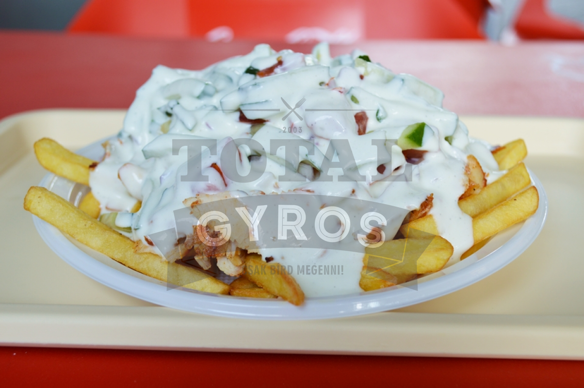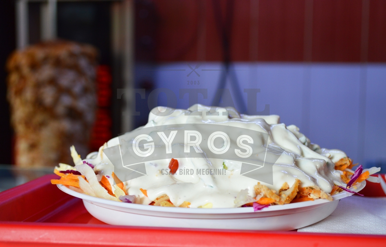 Nagygyrostál sajt nélkül, hasáb-körettel, zöldséggel és tartárral!