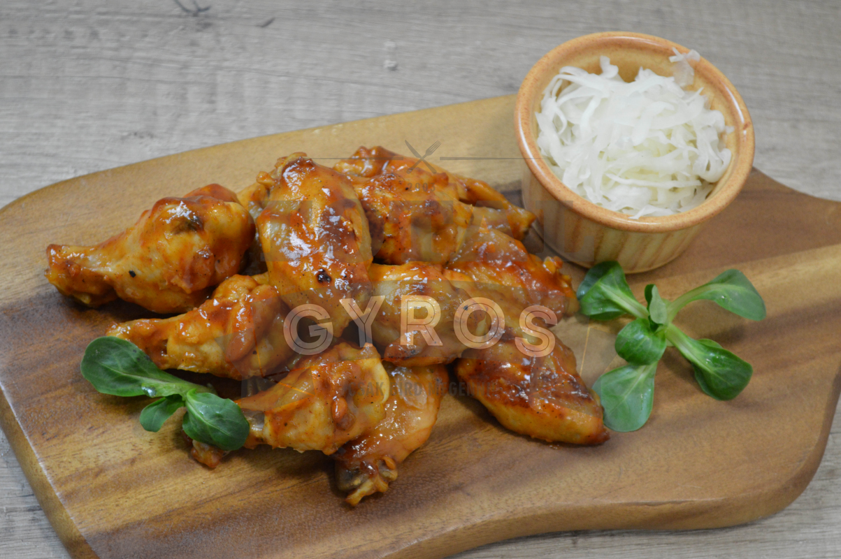 BBQ ízesítésű csirkeszárnyrészek, 14 DB + 2 db káposztasalátával
