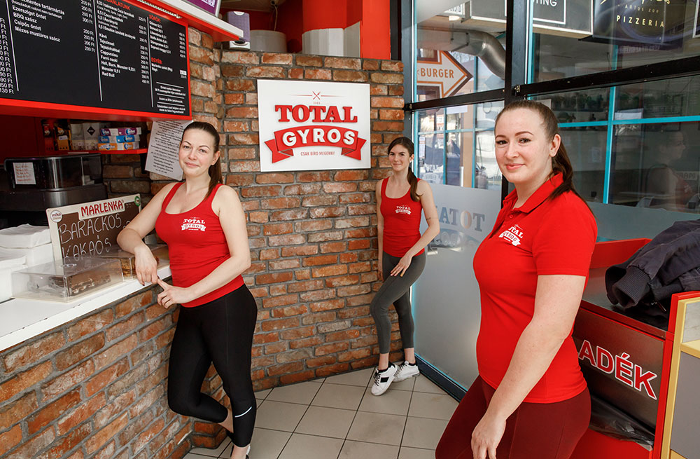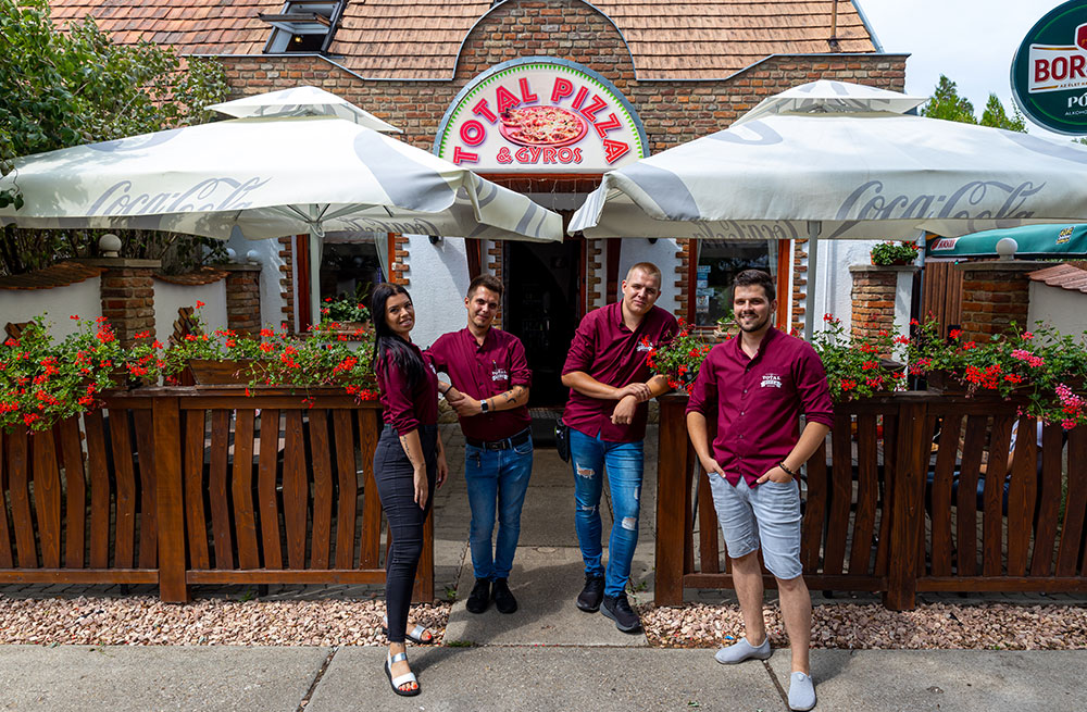 Időközben folyamatosan kacérkodtunk a gondolattal, hogy nemcsak gyros-t, hanem pizzát is kellene készíteni a nyíregyháziaknak. Így a fullos, vagyis a total gyros után, a fullos, vagyis total pizza is bekerült a kínálatba. Ez persze csak úgy volt lehetséges, hogy megnyílt a Total Pizzéria, Örökösföld szélén, a Család utca 96. szám alatt. Nagy álmunk volt az is, hogy a gyrostálat porcelán tányéron szolgálhassuk fel. A pizzériánkban már erre is lett lehetőség.